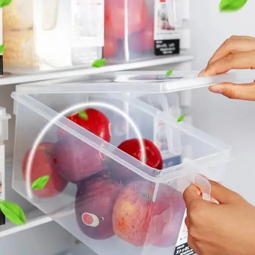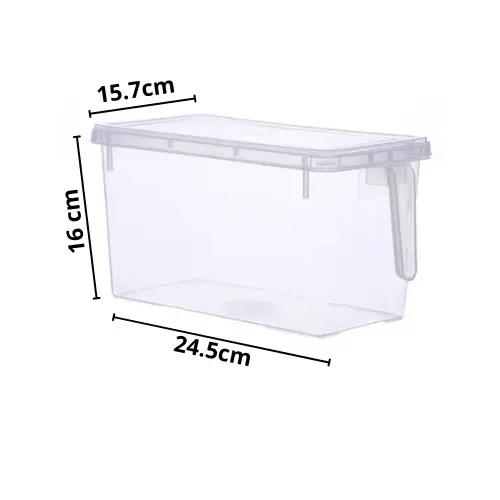 ¡Los organizadores transparentes con tapa y manija son la solución perfecta para ti!  Ideal para almacenar una variedad de alimentos, desde frutas y verduras hasta abarrotes y snacks, estos contenedores permiten que tus alimentos se mantengan frescos durante más tiempo. Colócalos en el refrigerador o en la alacena y disfruta de una organización impecable y una accesibilidad rápida gracias a su material transparente, que te permite ver el contenido sin necesidad de abrirlos.