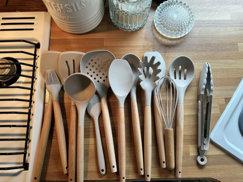 - Utensilios de cocina de silicona: Nueve utensilios de cocina de silicona diseñados para resistir el calor y evitar daños en tus utensilios de cocina.