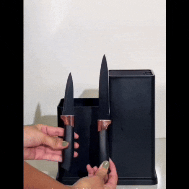 - Bloque de almacenamiento: El bloque incluido no solo organiza tus cuchillos de manera segura, sino que también añade un toque elegante a tu cocina.
